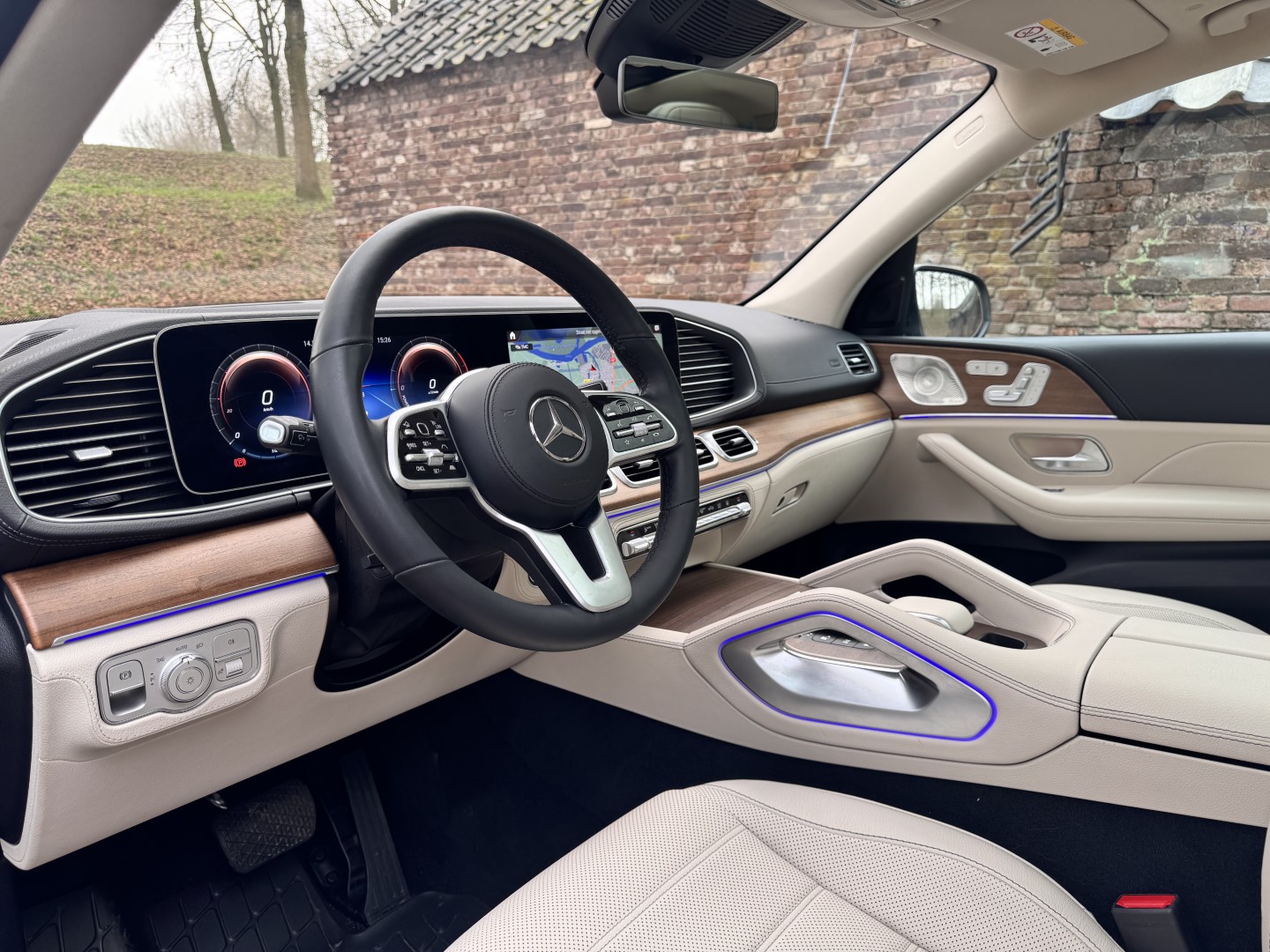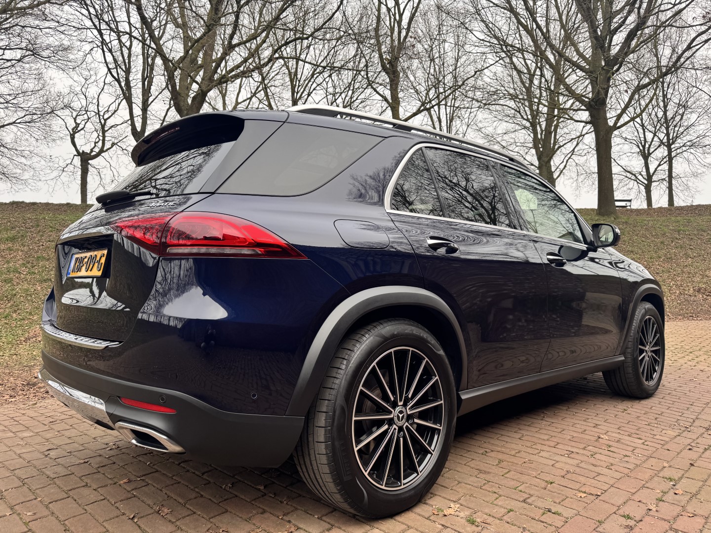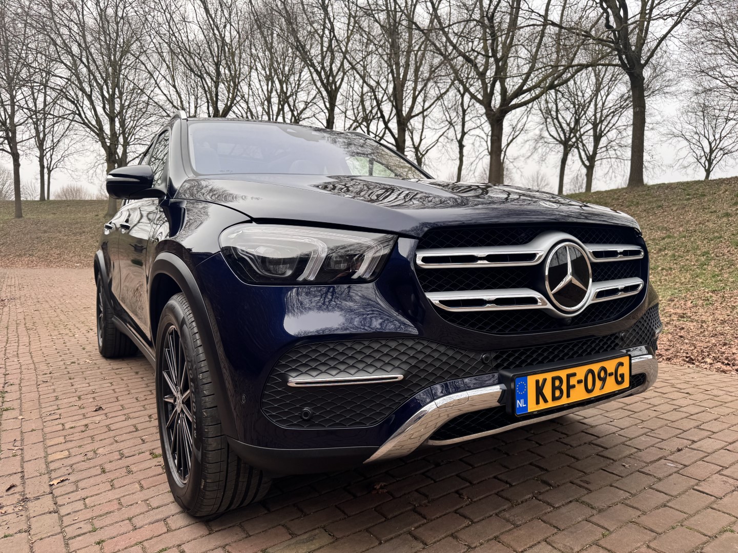 Bijzonder compleet uitgevoerde Mercedes-Benz GLE 350e. Uitgevoerd in het zeldzame MANUFAKTUR Cavansite Blue metallic, gecombineerd met een licht lederen interieur en walnotenhout.